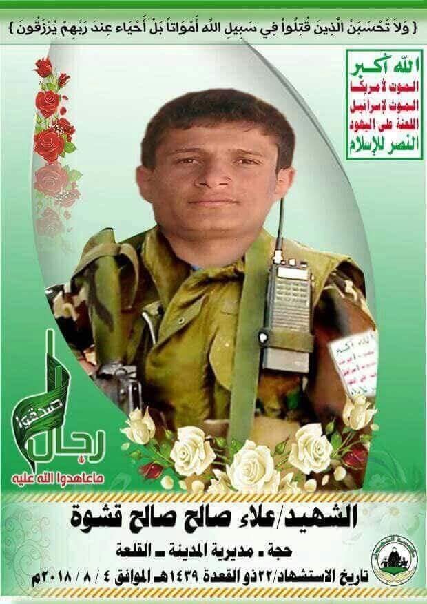 كما اعترفت مليشيات الحوثي بمقتل القيادي علا صالح صالح قشوة في مواجهة مع الجيش اليمني بالحديدة .