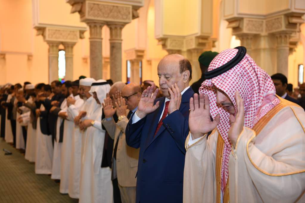 أدى فخامة الرئيس عبدربه منصور هادي رئيس الجمهوريه صباح الْيَوْم صلاة العيد مع جموع المصلين في قصر الناصريه بالرياض .