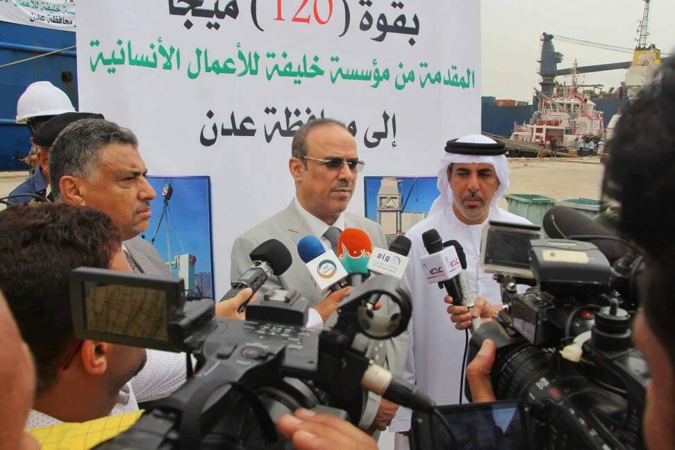 جاء ذلك خلال مراسيم استقبال وصول المحطة الكهربائية بقدرة 120 ميجا وات والمقدمة من مؤسسة خليفة للأعمال الأنسانية لكهرباء العاصمة المؤقتة عدن بحضور نائب وزير الكهرباء المهندس مبارك التميمي والأمين العام للمجلس المحلي بعدن بدر معاون وعدد من مسؤولي وزارة الكهرباء،و مدير العمليات الإنسانية لدولة الإمارات العربية المتحدة في بلادنا سعيد الكعبي .