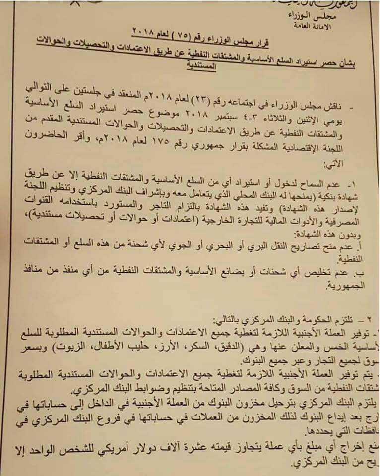 مجلس الوزراء يؤكد أن الحكومة لن تألوا جهداً وبالتعاون مع الأشقاء في التحالف العربي بقيادة المملكة العربية السعودية الشقيقه ، في تقديم الدعم الكامل لاستيراد المواد الأساسية مثل القمح والأرز والسكر والحليب وزيت الطعام والأدوية، وتوفيرها للجمهور بأسعار مناسبة، وفق ما تفتضيه المصلحة العامة ومصالح الجميع.
