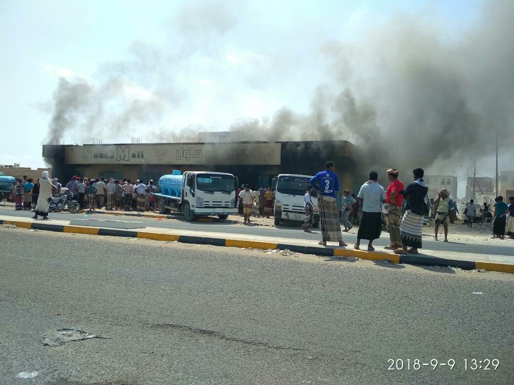 اندلعت النيران ظهر اليوم في مجمع سعاد مول التجاري سابقاً بمنطقة المنصورة في مدينة الشحر وسيارات مياة التحلية تهرع للإطفاء ولم تعرف الخسائر واسباب الحريق