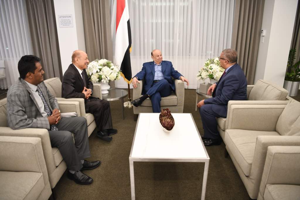 استقبل فخامة الرئيس عبدربه منصور هادي رئيس الجمهورية بمقر إقامته بالولايات المتحدة الأمريكية الوفد الرسمي المرافق لفخامته الذي وصل اليوم للمشاركة في أعمال الدوره ال73 للجمعية العامة للأمم المتحدة بنيويورك مستشاريه الدكتور رشاد العليمي ونصر طه مصطفى .