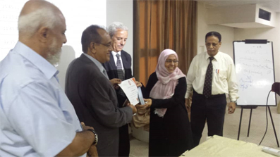 قي ختام الندوة التي حضرها الدكتوره ايمان باصديق نائب عميد كلية الطب والعلوم الصحية بعدن جری تكريم معدي الاوراق العلمية في التدوة وكرم مدير عام مكتب الصحة بعدن