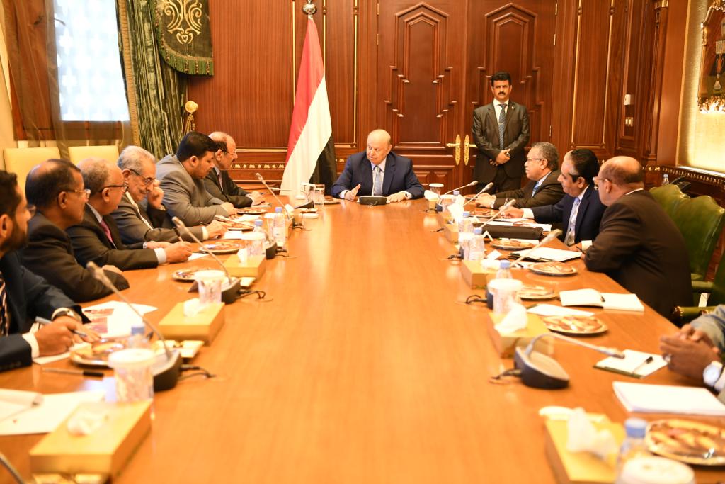 ترأس فخامة الرئيس عبدربه منصور هادي رئيس الجمهورية،اليوم،إجتماعاً باللجنة الإقتصادية بحضور نائبه الفريق الركن علي محسن صالح ورئيس الوزراء الدكتور احمد عبيد بن دغر.