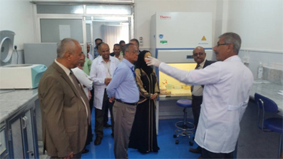 وزير الصحة اطلع علی التجهيزات من الدكتور سالم مدرم مدير عام مختبر الصحة المركزي والذي تضمنت اقسام الدم العام وقسم الكيمياء الحيوية والذي يعنی بفحوصات الوظائف الحيوية للجسم كالكبد والكلی والدهون والاملاح وقسم الفيروسات المعني بفحوصات فيروسات الايدز والكبد بانواعه وقسم الطفيليات واقسام الهرمونات ودلالات الاورام والاحياء الدقيقه وقسم الاستقبال وقسم اللياقه الصحية وقسم ضمان الجوده والسلامة الحيوية والتدريب والتاهيل والمياه والاغذية والترصد الوبائي