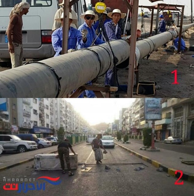 وعلى سبيل المثال لا الحصر، توضح الصورة الأولى سير العمل في مشروع استبدال الأنبوب الممتد من مصفاة عدن إلى محطتي الحسوة والمنصورة لتوليد الطاقة الكهربائية، والذي مولته الحكومة بتكلفة بلغت 2 مليار ريال، حيث سيوفر مبالغ مالية كبيرة كانت تصرف على عملية النقل البري.