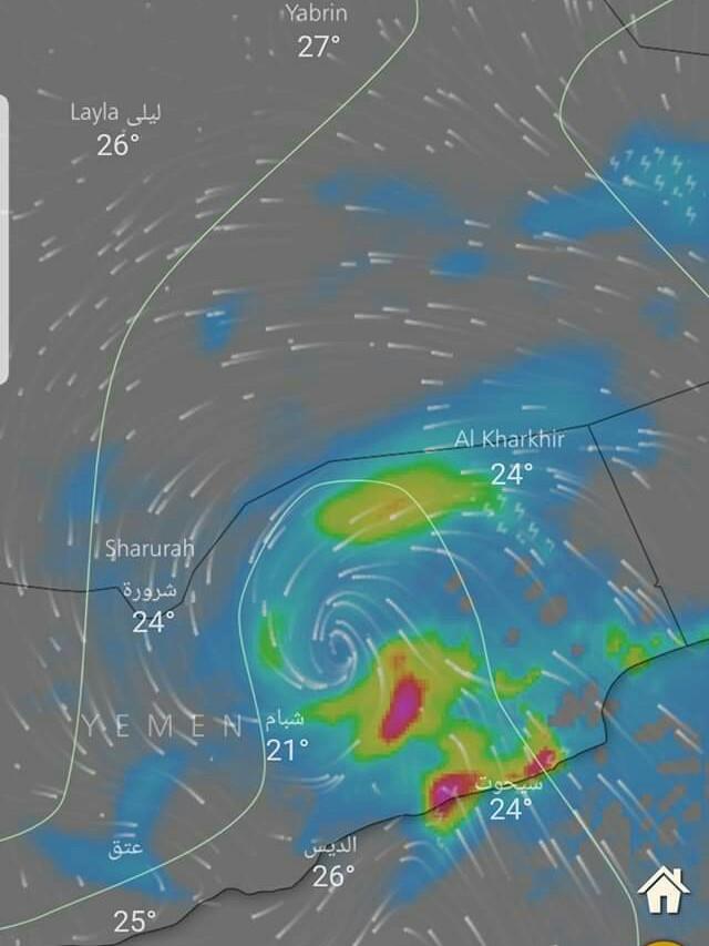 وأشارت توقعات الطقس ان العاصفة تحولت الى منخفض جوي عميق يتمركز معظم تاثيره على محافظتي المهرة وحضرموت ويتوقع هطول أمطار متنوعة وغزيرة خلال ساعات فجر يوم الإثنين وحتى منتصف ليلة الغد .