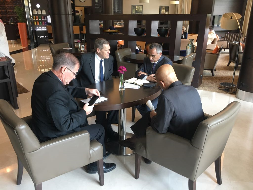 ناقش محافظ البنك المركزي الدكتور محمد زمام اليوم مع السفير الامريكي فى اليمن ماثيو تولير ، الاوضاع النقدية والمالية في اليمن ومنها تدهور قيمة العملة الوطنية وسبل مساعدة البنك من خلال اجتماعات الرباعية الاقتصادية.