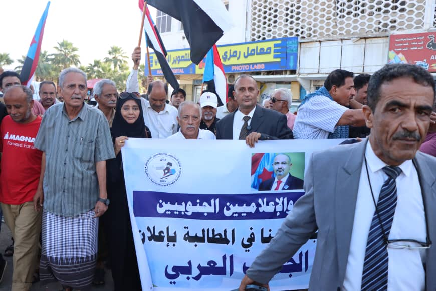 لبّت نقابة الصحفيين والإعلاميين الجنوبيين نداء القائد/ عيدروس الزُبيدي، رئيس المجلس الانتقالي الجنوبي، نائب رئيس مجلس القيادة الرئاسي، وأعلنت اصطفافها الوطني الصادق مؤازِرةً لكل القرارات والتوجيهات التي أصدرها، انطلاقاً من مسؤوليتها الوطنية والإعلامية، وإيمانها العميق بعدالة قضية شعب الجنوب وحقه المشروع في استعادة دولته كاملة السيادة. ولم يكن هذا اليوم يوماً عادياً في تاريخ نضال شعب الجنوب، بل كان محطة نضالية مفصلية وخطوة متقدمة في مسيرة التحرر الوطني من هيمنة نظام صنعاء. إنه يوم يؤكد أن الجنوب بات أقرب من أي وقت مضى إلى لحظة الإعلان التاريخية عن قيام دولة الجنوب العربي، المشروع الوطني الجامع الذي يعيد للجنوب اعتباره أرضاً وشعباً وهوية. وقد سجّل هذا اليوم حضوراً نوعياً وموقفاً وطنياً مشهوداً بانضمام نقابة الصحفيين والإعلاميين الجنوبيين، برئاسة نقيبها الأستاذ/ عيدروس باحشوان، إلى الاحتشاد الجماهيري الكبير في ساحة العروض، رافعين راية الكلمة الحرة، ومجددين العهد بأن يكون الإعلام الجنوبي في مقدمة الصفوف، منحازاً لقضية شعبه، ومدافعاً عن حقه في دولته الجنوبية العربية وعاصمتها عدن. ومنذ اللحظة التي أعلن فيها مذيع منصة الاحتفال انطلاق موكب النقابة باتجاه الساحة والمنصة، اهتزت الساحة فرحاً واعتزازاً، وتعالت الهتافات مرحّبة بهذه المشاركة التي تحمل رمزية الموقف وصلابة الكلمة. فتقدّم الأحرار من رجال وشباب ومناضلي الجنوب نحو موكب النقابة، في مشهد وطني مهيب، جسّد وحدة الصف الجنوبي، والتلاحم الثوري بين الجماهير وقواها الوطنية، وسار الجميع كتفاً إلى كتف نحو المنصة، حاملين رسالة واحدة وإرادة واحدة لا تلين. إنه يوم جنوبي عظيم، يوم أعلن فيه الشعب مجدداً أن لا تراجع عن هدف الاستقلال، ولا حياد عن قضية استعادة الدولة. إنها مسيرة مستمرة حتى النصر، وحتى بناء دولة الجنوب العربي… دولة السيادة والكرامة، دولة الحقوق والواجبات، ودولة العدل والخير لكل أبناء الجنوب.