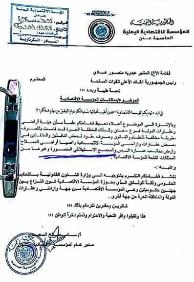جاء ذلك خلال تنديدات وخطابات ووقفات احتجاجية اطلقتها قيادة المؤسسة الاقتصادية بشأن المطالبة بعودة كافة عقارات ومنشآت المؤسسة إلى اصولها والمحافظة عليها.