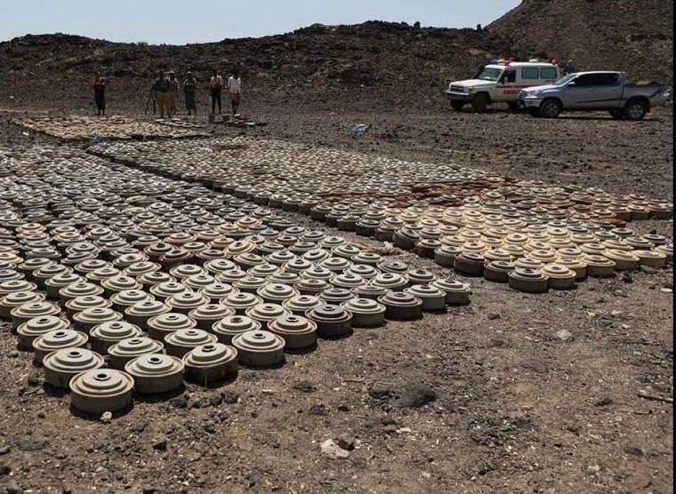 يذكر أنه منذ بداية "عاصفة الحزم" وبعدها "إعادة الأمل"، تمكنت الفرق الهندسية في الجيش الوطني اليمني من إتلاف مئات آلاف الألغام، 20 ألفاً في حجة وحدها، من أصل مليون لغم زرعتها ميليشيات الحوثي في محافظات وقرى اليمن كافة.
