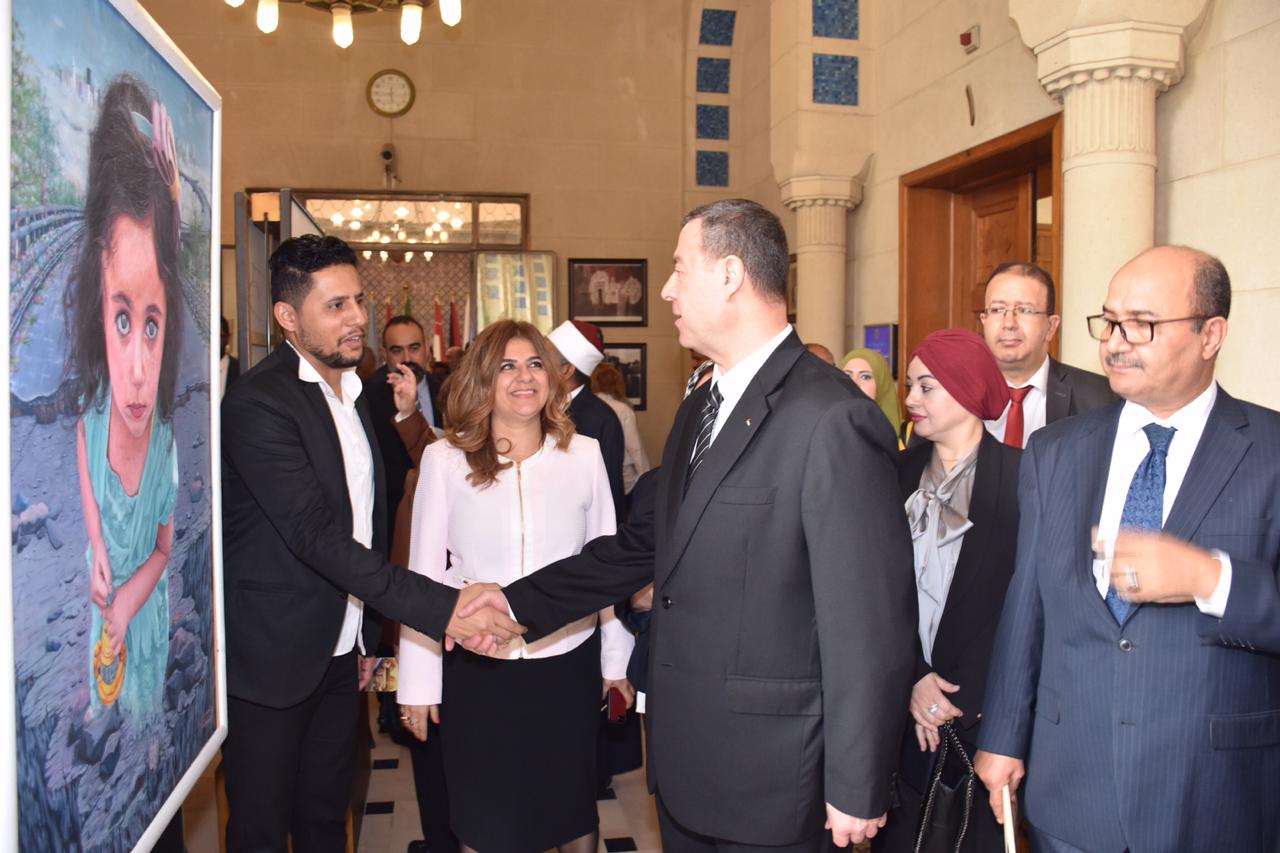 وبعد الانتهاء من افتتاح المعرض تم تكريم الفنانين من قبل سعادة السفير الدكتور سعيد ابو علي الامين العام المساعد ورئيس قطاع فلسطين والاراضي العربية المحتلة