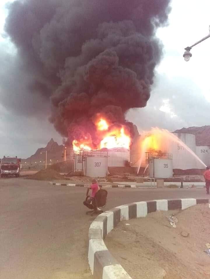 مصدر أخر افاد ان الحريق ازداد بعد الانفجار وخرج عن السيطرة لتصل النيران الى الخزان الثاني .