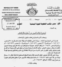 كما بين ان فرع شركة النفط بالوادي قد عمل على مخاطبة القائمين على الخطوط الجويه اليمنيه بعدد من المذكرات؛ بهدف الاسراع في عملية التسديد للوفاء بالتزامات شركة النفط بالوادي لشركة النفط بعدن لضمان استمرارية التموين .