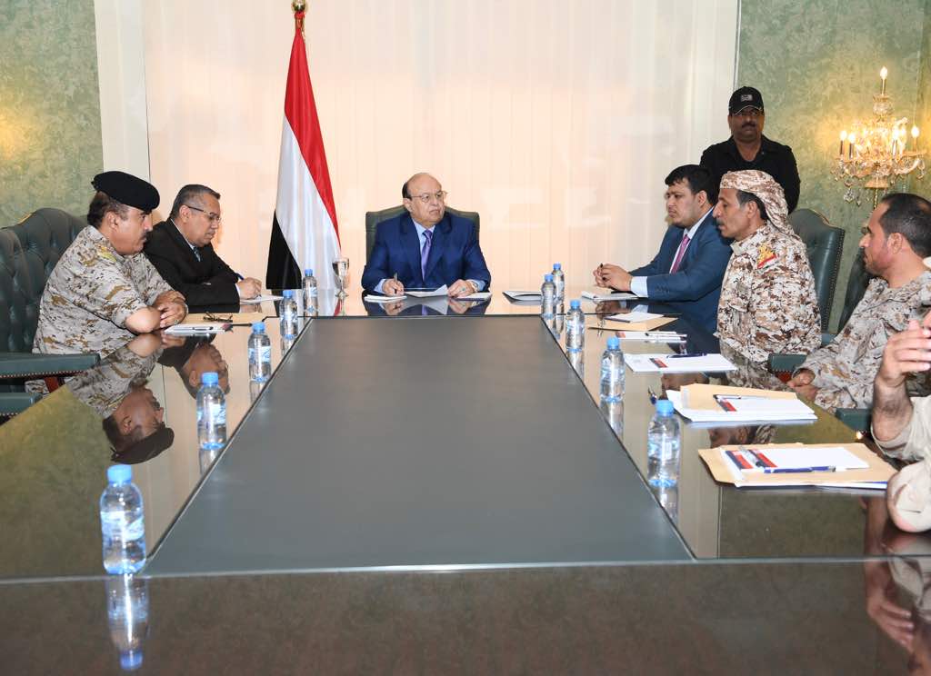 وعلق الرئيس هادي على القيادات العسكرية والأمنية بضرورة توحيد الجهود والصفوف لإستعادة المحافظة ومنحها الكثير من الجهد والإهتمام .