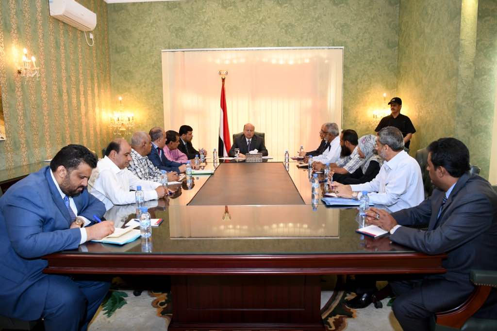 رئيس الجمهورية يعقد إجتماعاً بعدد من القيادات التنفيذية المسؤولة عن قطاع الكهرباء بعدن