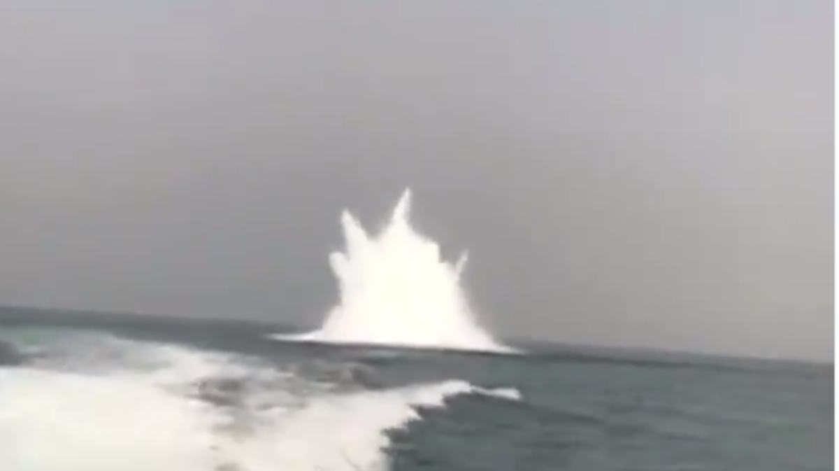 وقد وثق مراسل "العربية" في اليمن لحظة تفجير الجيش اليمني صباح اليوم للغم البحري الذي زرعته الميليشيات الحوثية في البحر الأحمر.