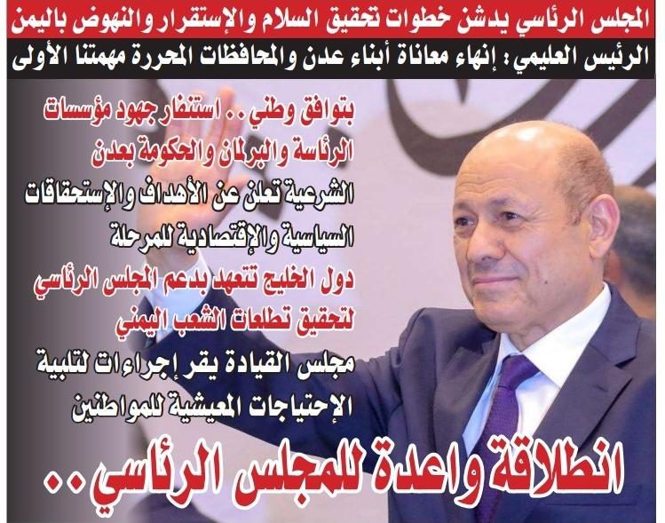 - الرئيس العليمي: إنهاء معاناة أبناء عدن والمحافظات المحررة مهمتنا الأولى
