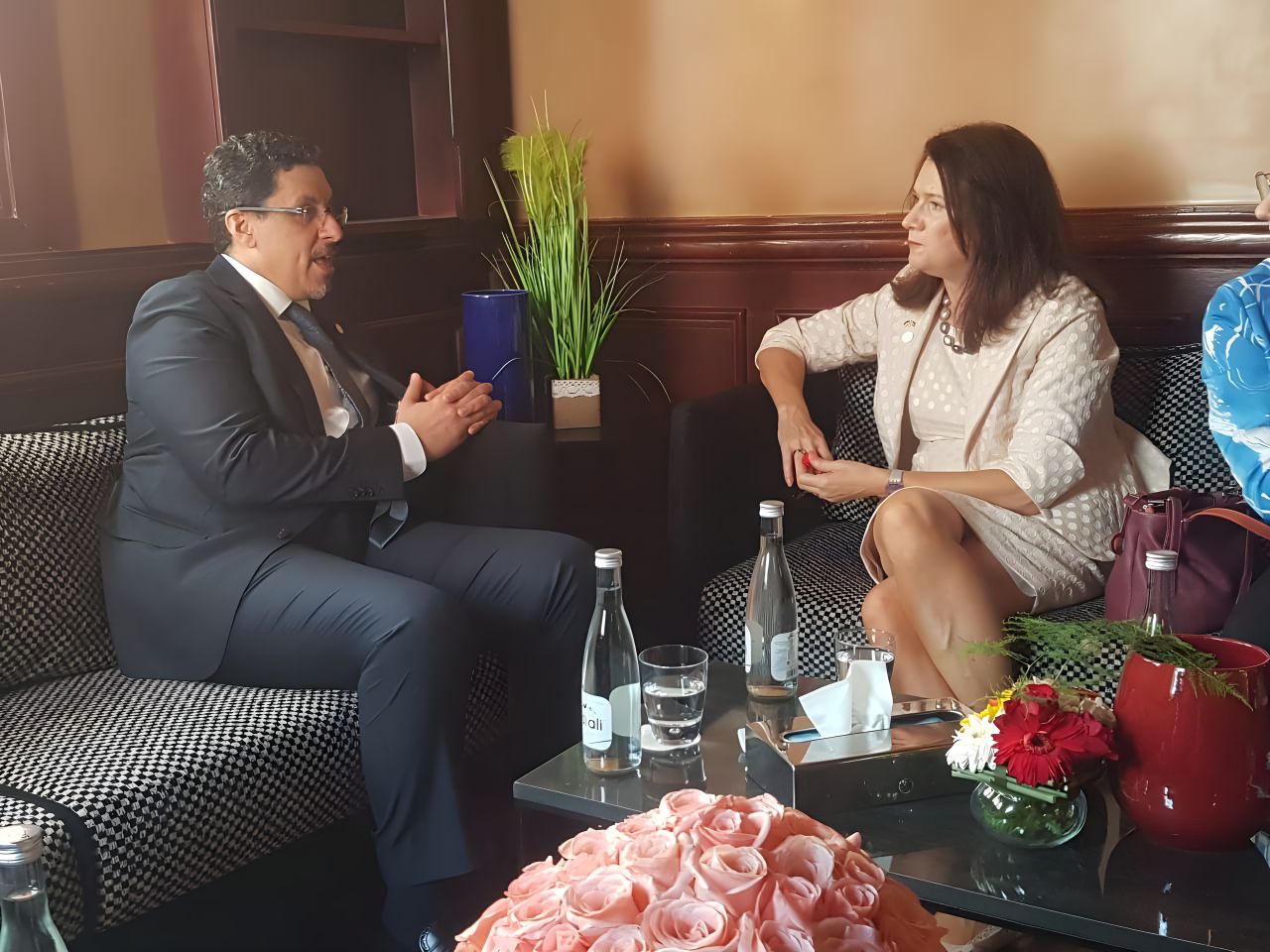 التقى وزير الخارجية وشؤون المغتربين الدكتور أحمد عوض بن مبارك، اليوم، وزيرة خارجية مملكة السويد آن ليندي، وذلك على هامش مشاركته في المؤتمر الدولي ضد داعش، المنعقد في مدينة مراكش المغربية.
