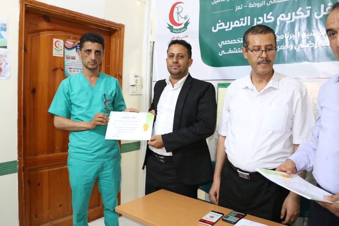 احتفاءً باليوم العالمي للتمريض، وتكريماً للجهود الجبارة لممرضي وممرضات مستشفى الروضة، أقامت إدارة المستشفى اليوم حفلاً تكريمياً لطاقم التمريض، اعترافاً بالجميل وتقديراً لدورهم المحوري ومهمتهم الإنسانية في إنقاذ حياة المرضى وتطبيبهم ورعايتهم والعناية بهم.